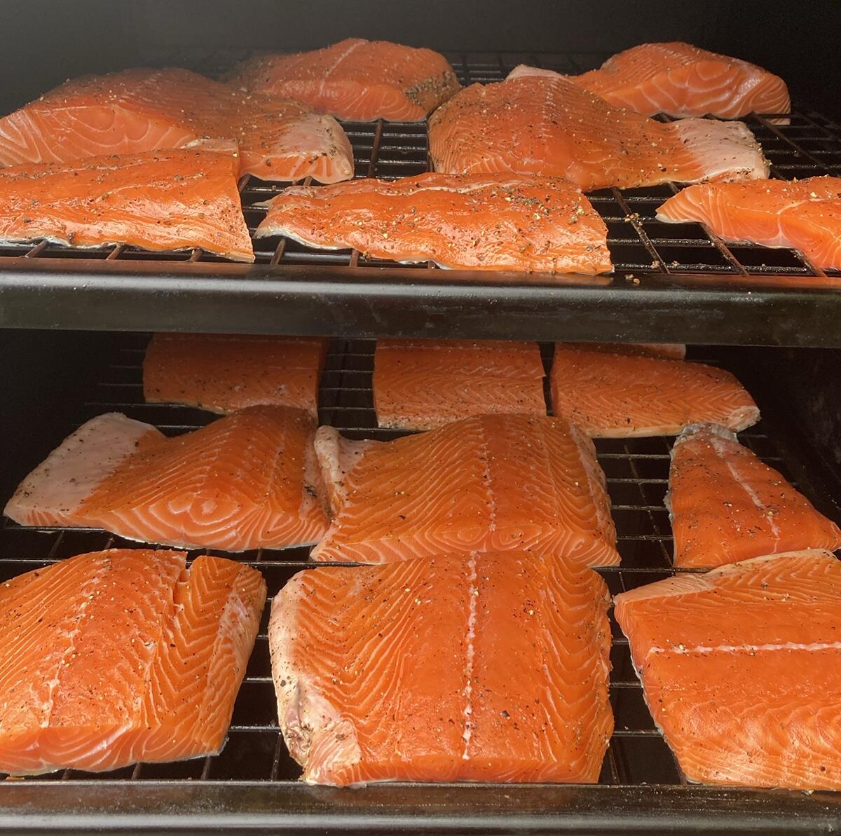 Na ontvangst wordt de zalm met diverse smaakversterkers en kruiden bestrooid, vervolgens gedroogd en warm gerookt, op een mix van beuken/eiken houtsnippers. Het resultaat is een fantastisch product, met een fantastische smaakbeleving.